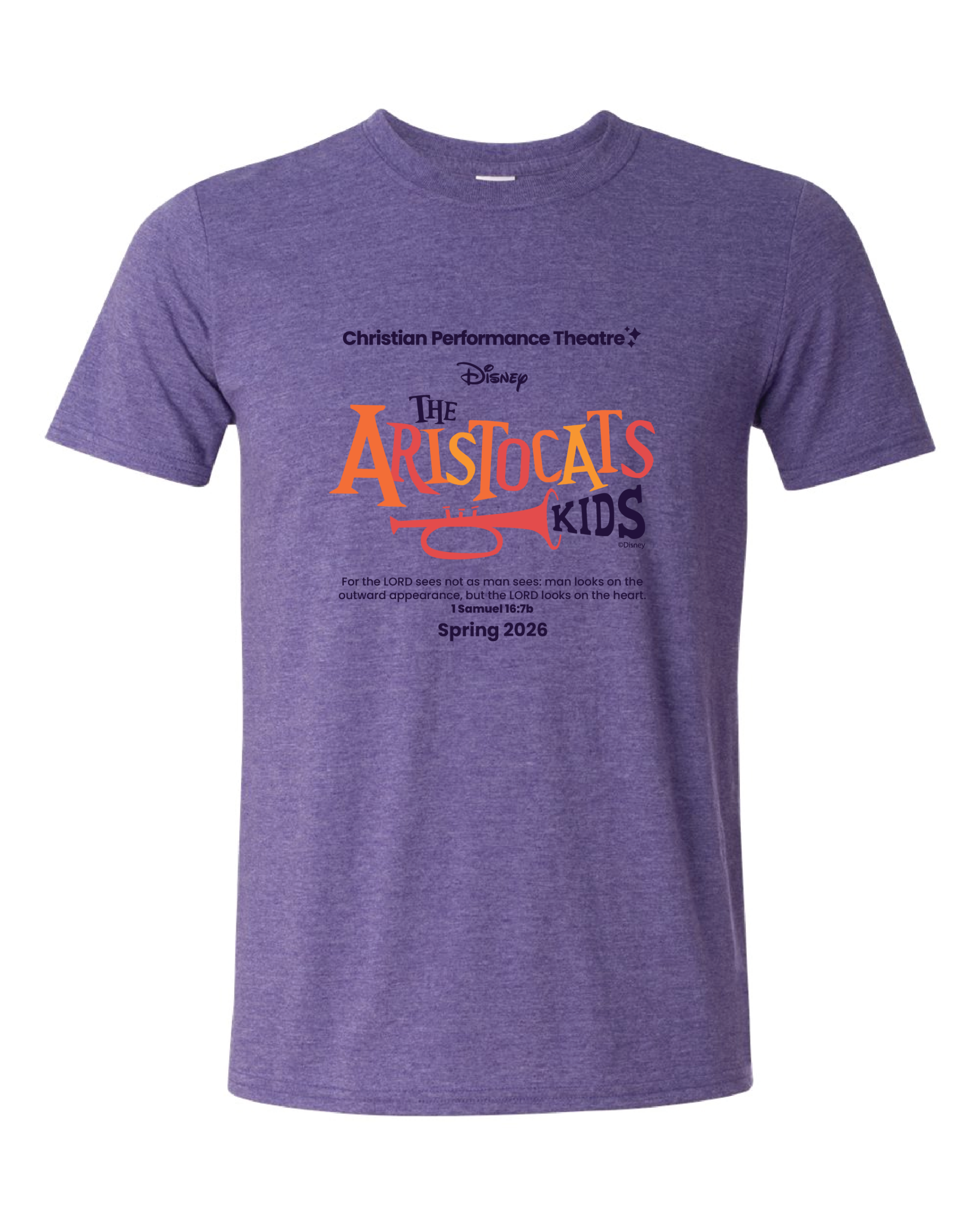 The Aristocats Kids Show Shirts are optional for Enrollment Show students, but many students like having the shirt to commemorate their experience. Aristocats Kids families and crew are also invited to purchase a shirt. We take a group photo of the cast and if students have a show shirt, we ask them to wear it. It’s also a great way to advertise the show!  Please order by February 24 to get your shirt!